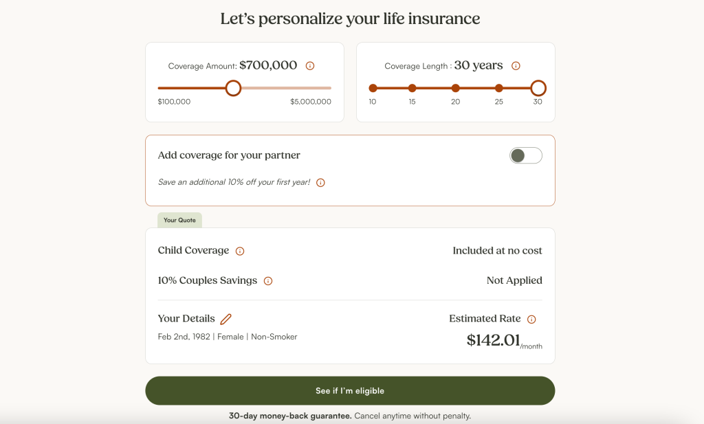 One standout feature at PolicyMe is their Child Coverage. As a parent, you can take advantage of this benefit at no extra cost. While you have an active policy, each of your children is covered with $10,000 in life insurance, giving you peace of mind knowing that they are protected too. It’s an easy way to add an extra layer of security for your family’s future without any additional expense.